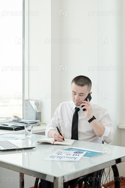 Загруженный босс планирует работу, делая заметки и звоня клиентам