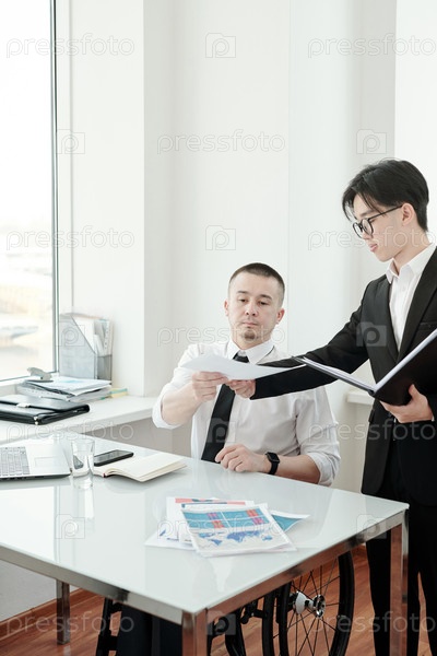 Уверенный в себе босс дает бумагу своему подчиненному