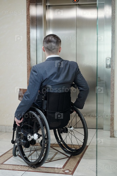 Инвалид в инвалидном кресле ждет лифта