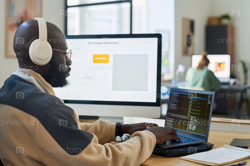 Программист в наушниках декодирует данные