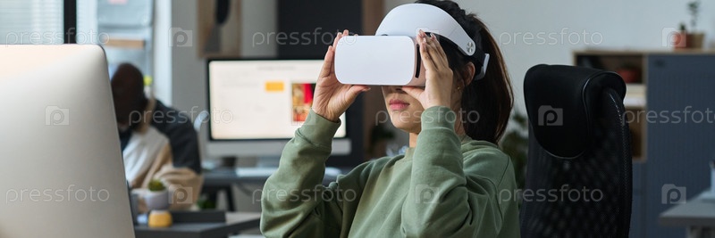 Молодая женщина-дизайнер в шлеме VR