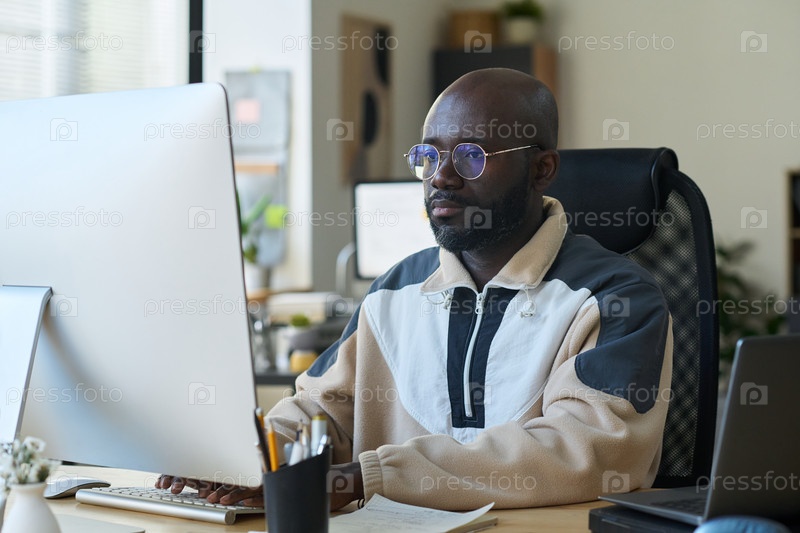Молодой серьезный дизайнер в очках