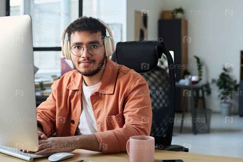 Парень, работающий в сети перед компьютером
