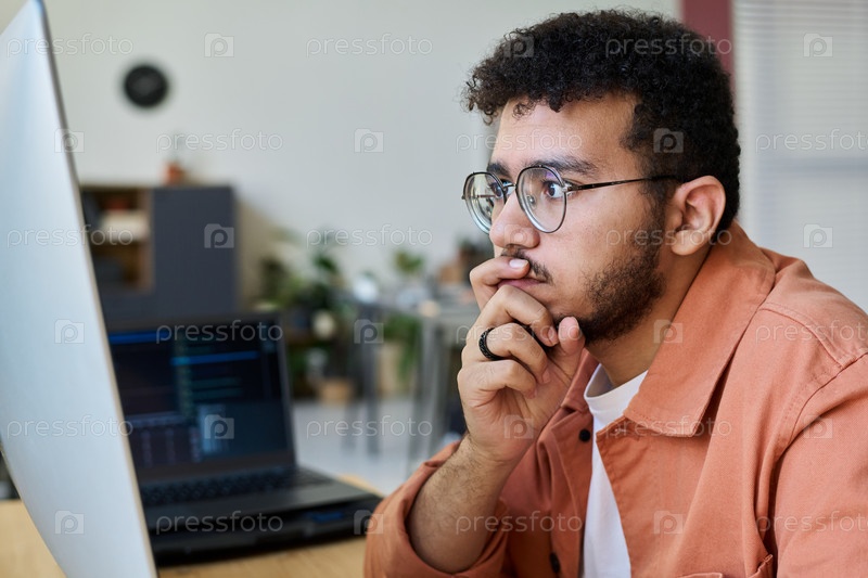Молодой мыслящий программист в очках