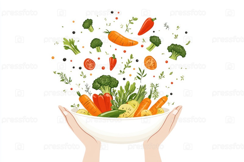 Приготовление свежих овощей в ярком жареном блюде с помощью wok-view