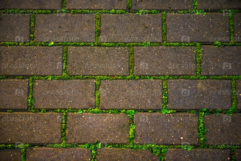 Старый мостовой камень с мхом в трещинах