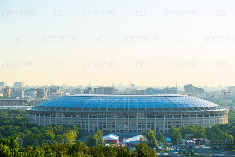 Утренний захватывающий дух городской пейзаж футбольного стадиона Лужники в Москве