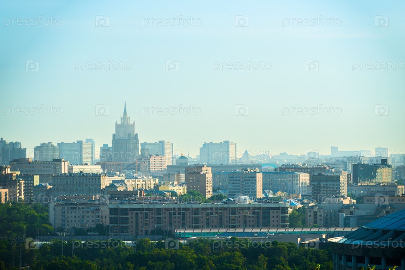 Городской пейзаж Москвы с Morning Sparrow Hills.Россия