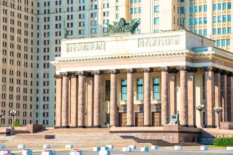 Колонный вход Московского государственного университета имени Ломоносова.Россия