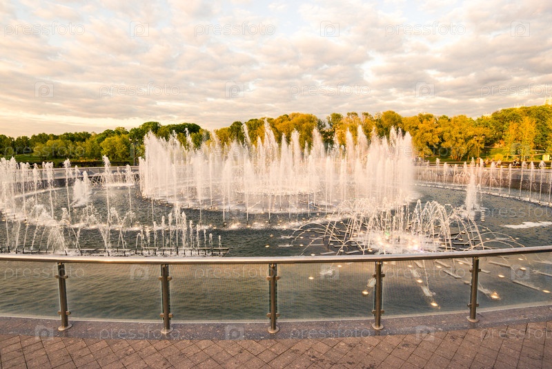 Красивый летний свет и музыкальный фонтан ансамбля имения Царицыно.Москва, Россия