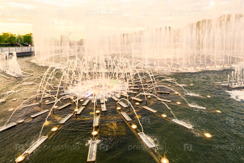 Красивый летний свет и музыкальный фонтан ансамбля имения Царицыно.Москва, Россия