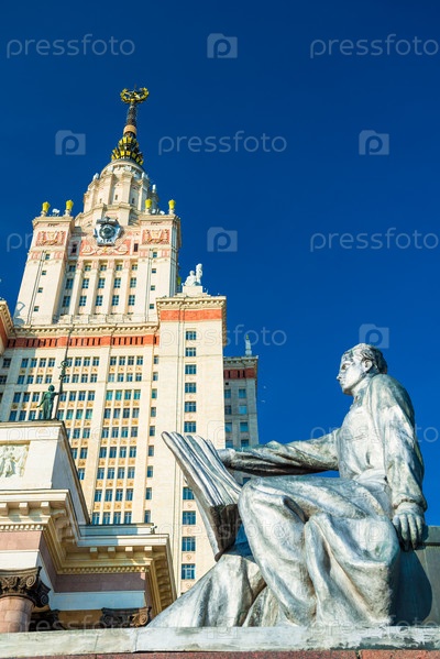 Памятник Ломоносову на фоне МГУ.Россия