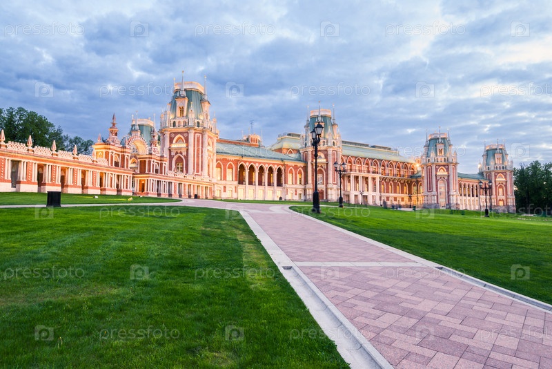 Вечерний вид на ансамбль имения Царицыно, Большой дворец.Москва, Россия