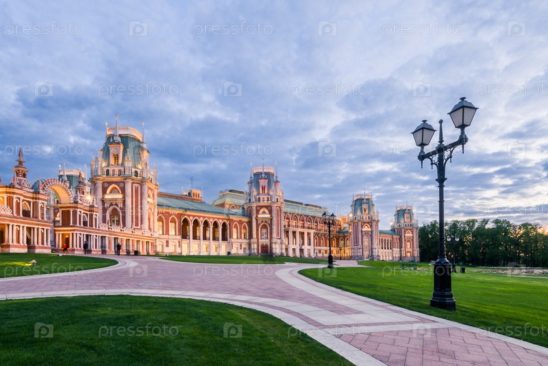 Вечерний вид на ансамбль имения Царицыно, Большой дворец.Москва, Россия