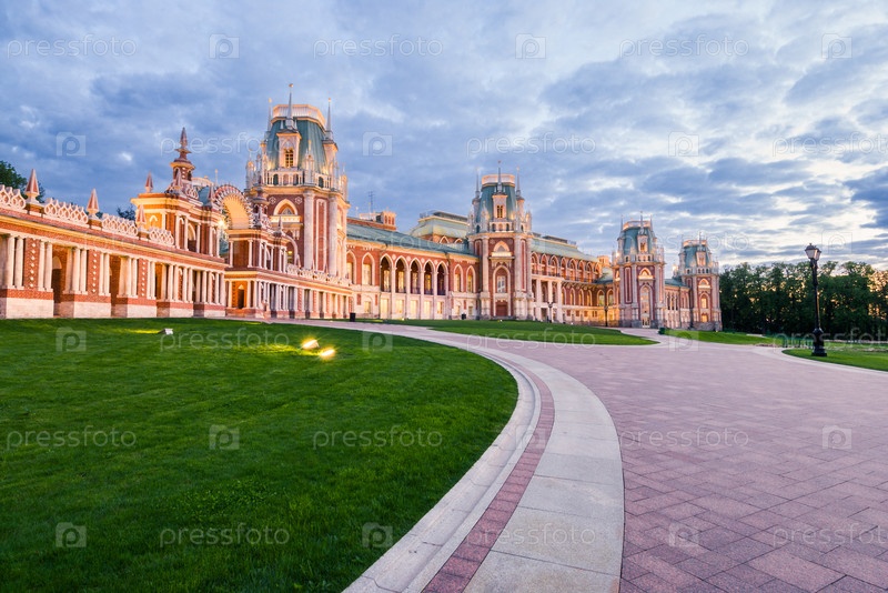 Вечерний вид на ансамбль имения Царицыно, Большой дворец.Москва, Россия