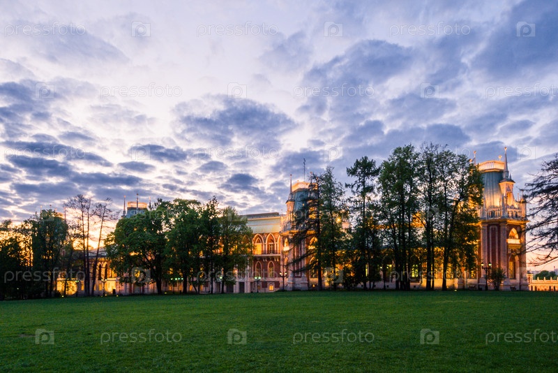 Вечерний вид на ансамбль имения Царицыно, Большой дворец.Москва, Россия