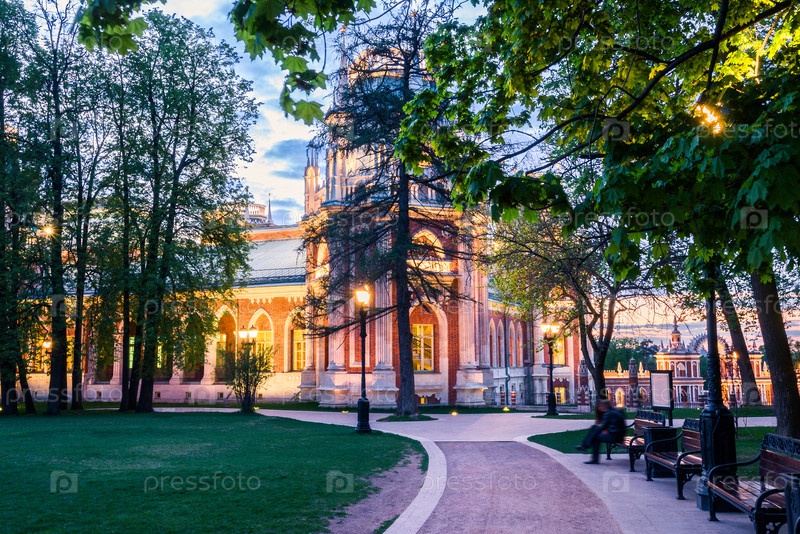 Вечерний вид на ансамбль имения Царицыно, Большой дворец.Москва, Россия