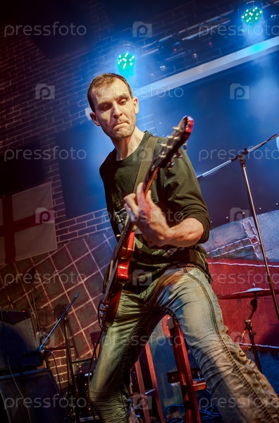 Музыкант играет на гитаре на сцене