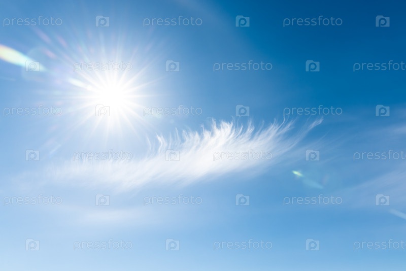Облака в голубом небе, яркое полуденное солнце освещает пространство