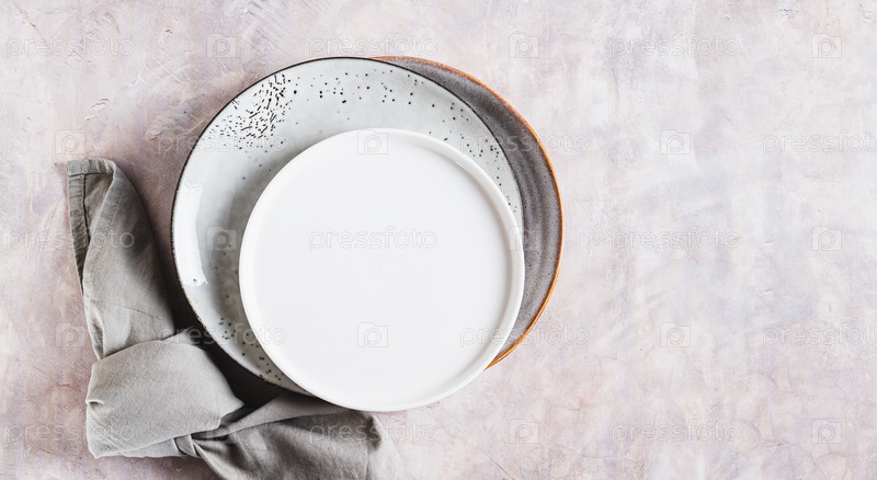 Концепция диеты и голодания, пустые тарелки в яркой верхней части веб-баннера