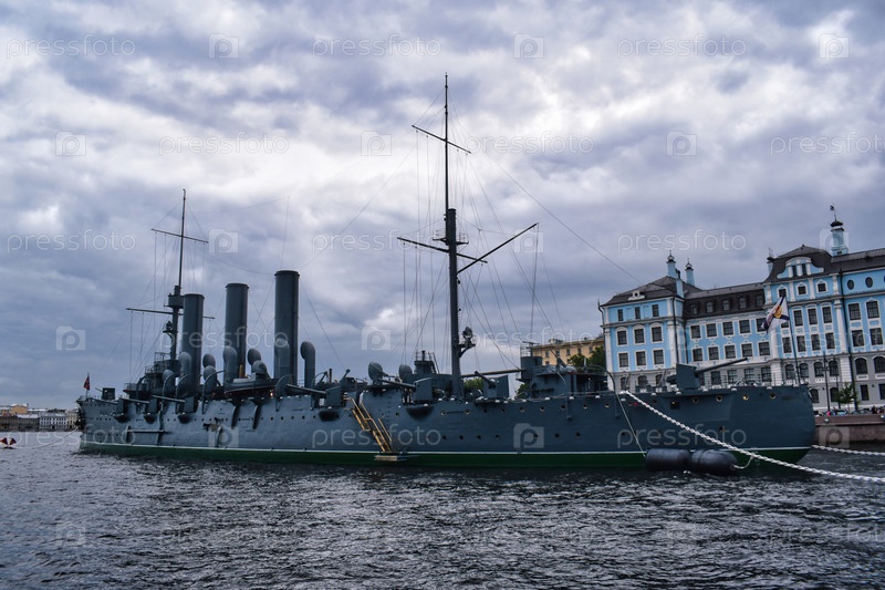Исторический символ Санкт-Петербурга: крейсер 'Аврора' у причала Невы
