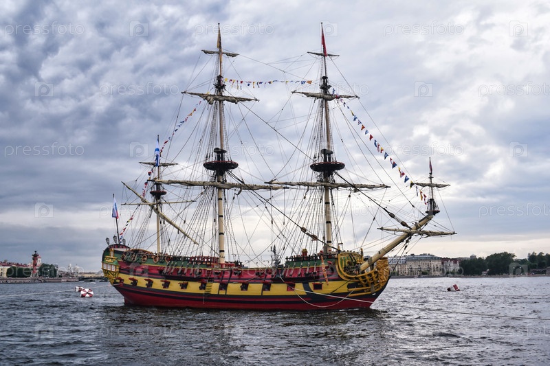 Красивый корабль на реке Неве в Санкт-Петербурге