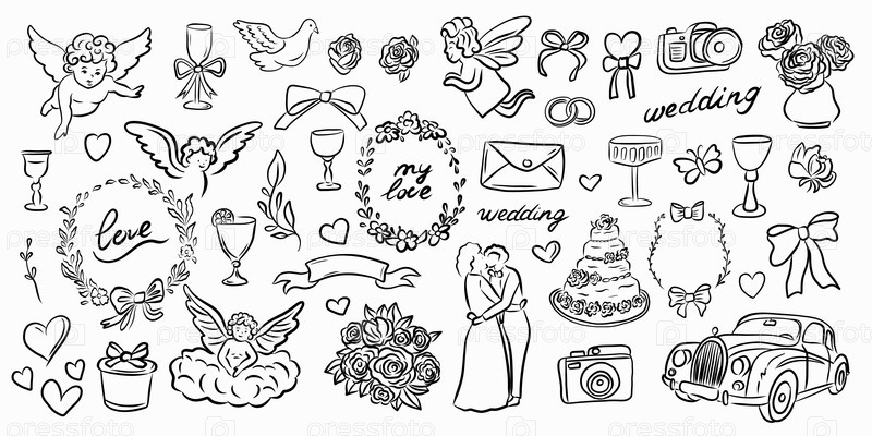 Красивая и романтичная коллекция свадебных клипартов для всех ваших свадебных нужд и не только