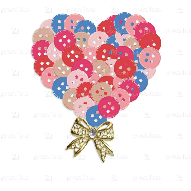 Плакат ко Дню святого Валентина с сердцем из разноцветных пуговиц и золотым бантом
