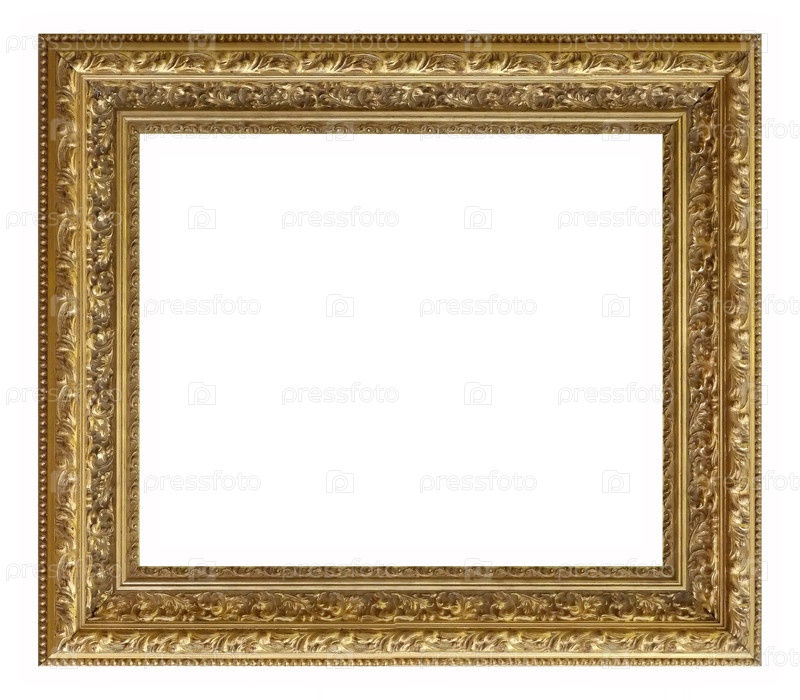 Золотая рама для картин, зеркал или фотографий на белом фоне