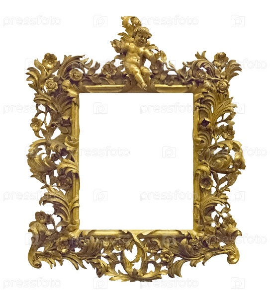 Золотая рама для картин, зеркал или фотографий на белом фоне