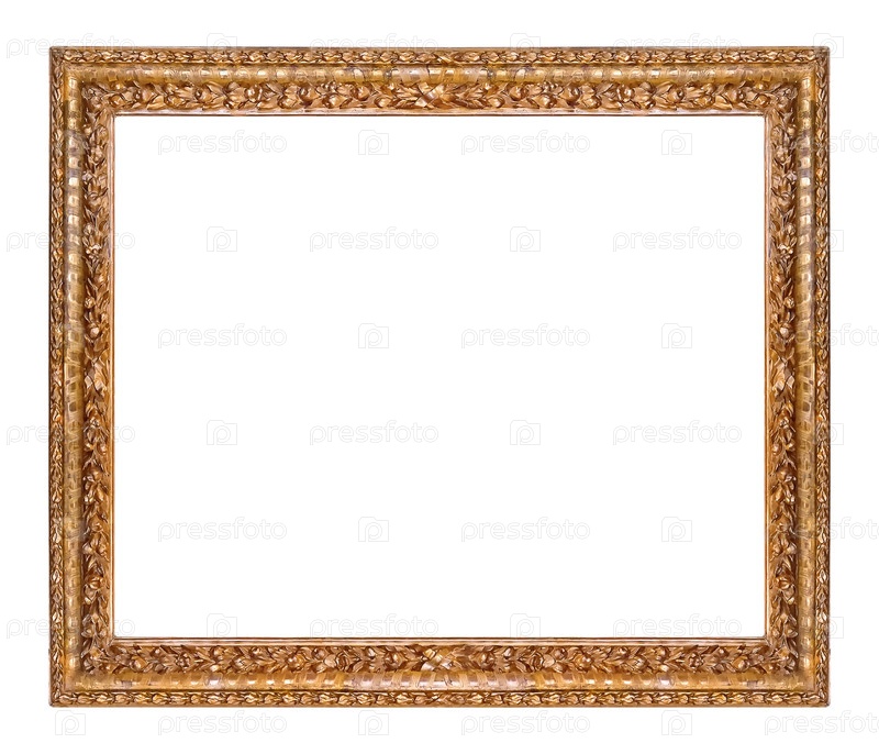 Золотая рама для картин, зеркал или фотографий на белом фоне