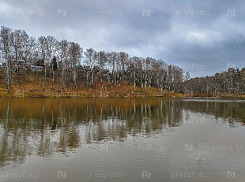 Осеннее озеро в пасмурный день