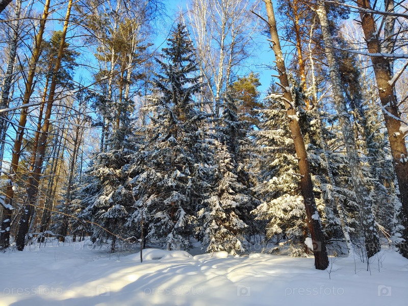 Зимний лес в лучах солнца