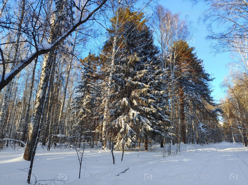 Зимний лес перед закатом