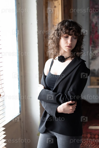 Портрет молодой красивой женщины с вьющимися волосами в студии