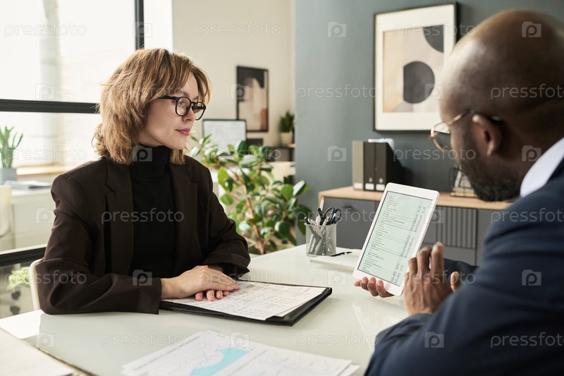 Коллеги обсуждают финансовый онлайн-отчет о бизнесе