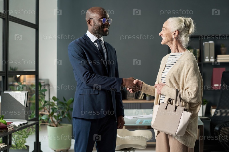 Женщина, пожавшая руку старшему менеджеру