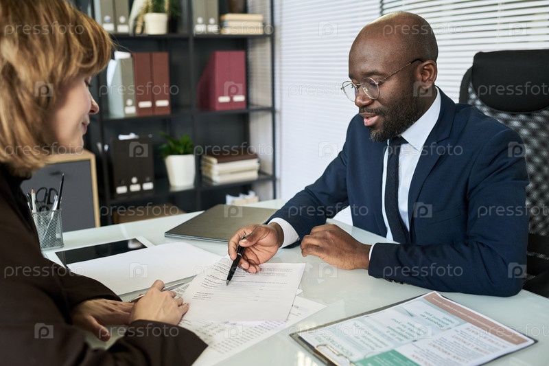 Деловая женщина заключает финансовый контракт на встрече