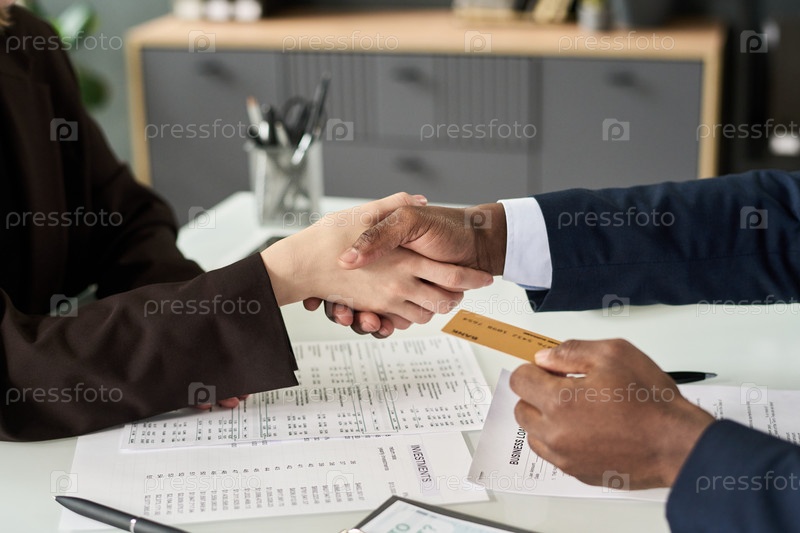Бизнесмены пожали друг другу руки, чтобы заключить финансовый контракт