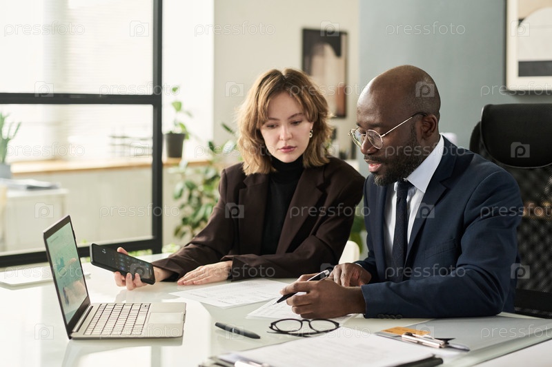 Коллеги по бизнесу, работающие с финансовыми отчетами