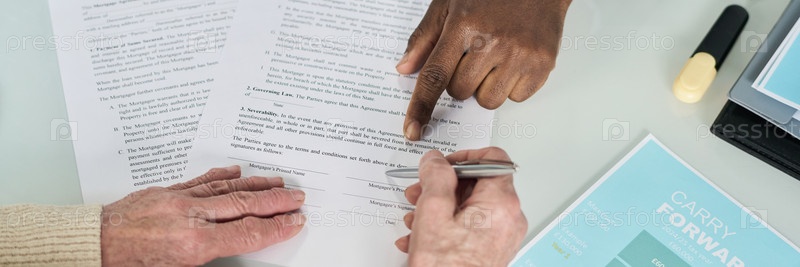 Старшая женщина, подписывающая контракт на встрече