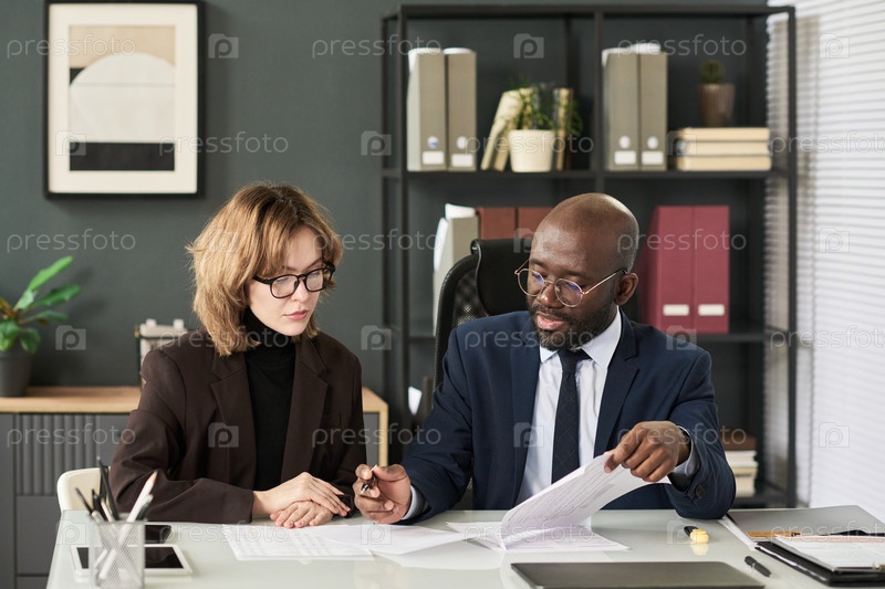 Бизнес-партнеры обсуждают финансовый отчет