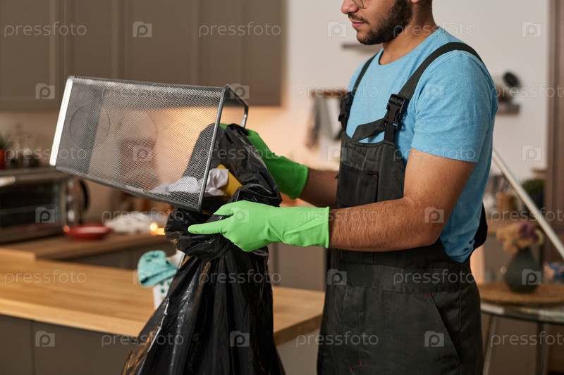 Человек, выбрасывающий мусор из корзины