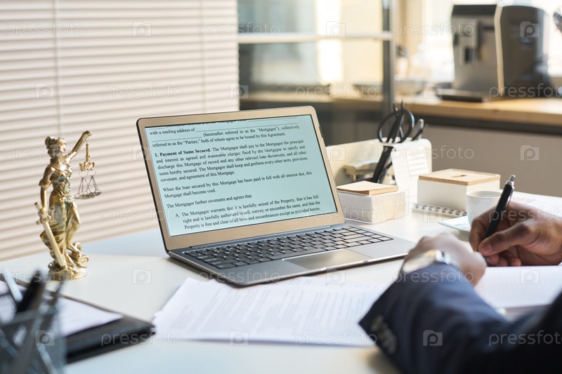Непризнанный мужчина-адвокат пишет в блокноте