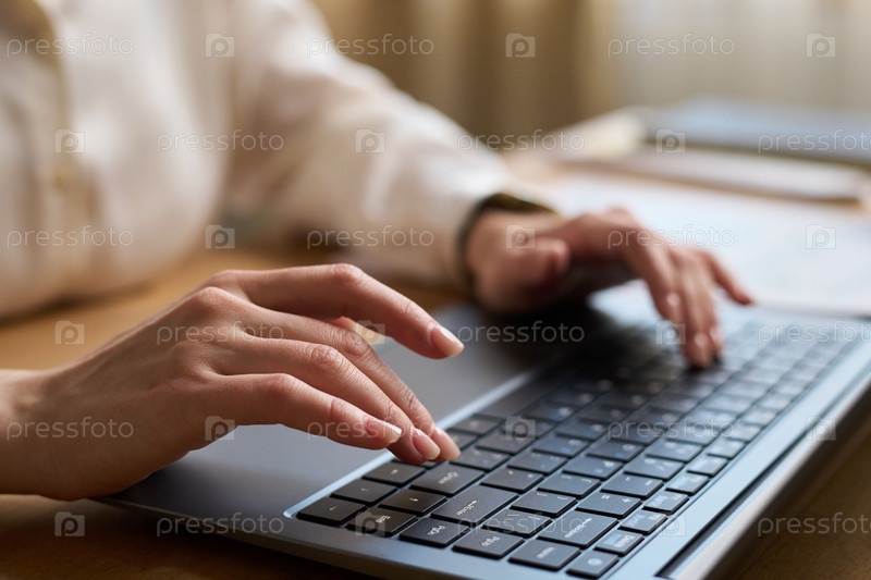 Женские руки, печатающие на ноутбуке в офисе