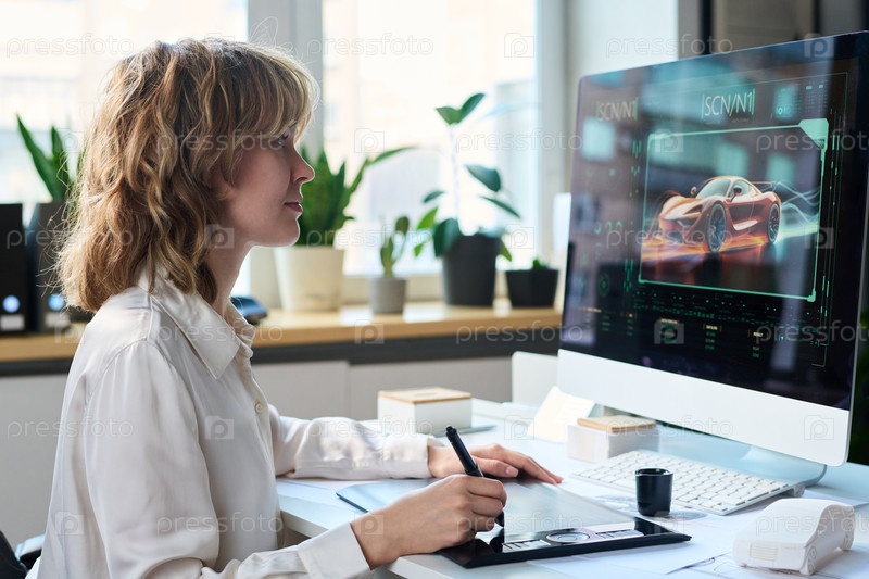 Женщина-дизайнер рисует модель нового автомобиля