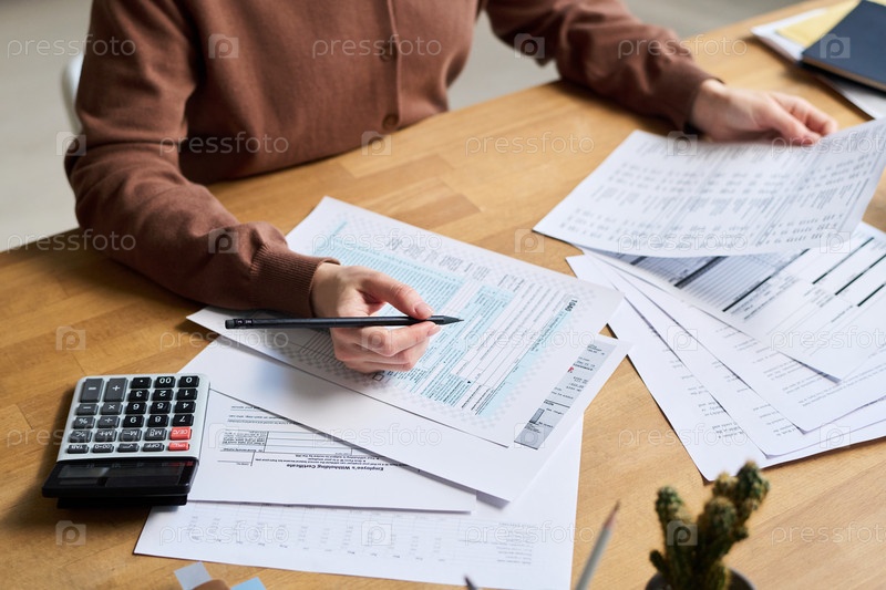 Непризнанная женщина изучает данные в банковских документах