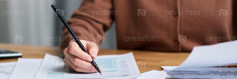 Непризнанная молодая женщина проверяет данные в заголовке документов