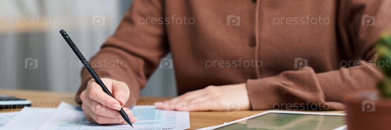 Непризнанная молодая женщина делает записи в заголовке документа