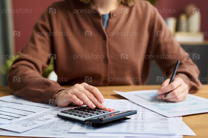 Руки женщины, рассчитывающей домашние расходы